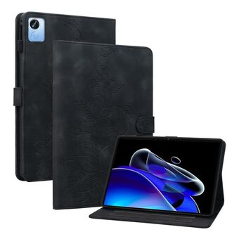 Για Realme Pad Mini 8.7 Lily ανάγλυφη δερμάτινη θήκη για tablet (Μαύρο)
