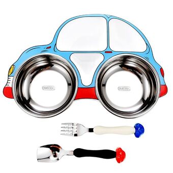 304 Stainless Steel Children Car Dinner Plate, Style:Blue