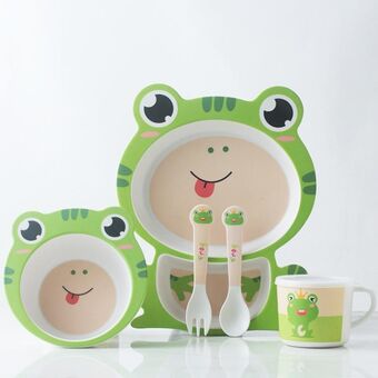 Bamboo Fiber Children Tableware Set Household Cute Cartoon Baby Food Supplement Plate Set(045 Frog)