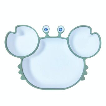 Children One-Piece Full Silicone Table Cartoon Crab Separation Plate(Green)