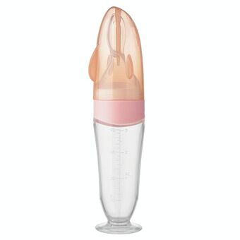 Baby Silicone Bottle Squeezeable Feeding Spoon Childrens Supplementary Bottle Feeder(Pink)