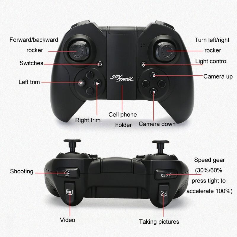 8. Λειτουργίες: εμπρός, πίσω, στροφή αριστερά, στροφή δεξιά, λεπτομερής ρύθμιση αριστερά, λεπτομερής ρύθμιση δεξιά, κάμερα πάνω-κάτω, λήψη φωτογραφιών και βίντεο