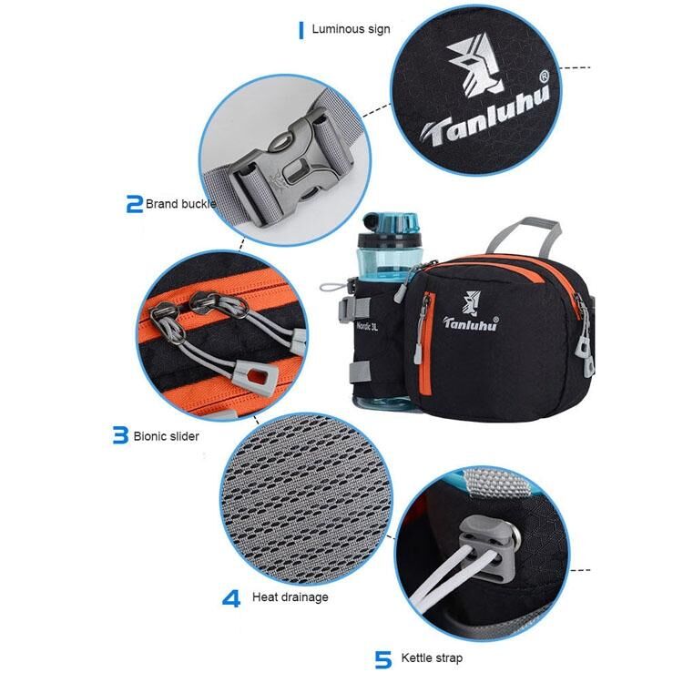 Τσάντα μέσης για υπαίθρια αθλήματα Tanluhu FK389, Πολυλειτουργική τσάντα για μπουκάλι νερού κατά το τρέξιμο, θήκη μεταφοράς για ποδηλασία, Μέγεθος: 2L (Μαύρο)