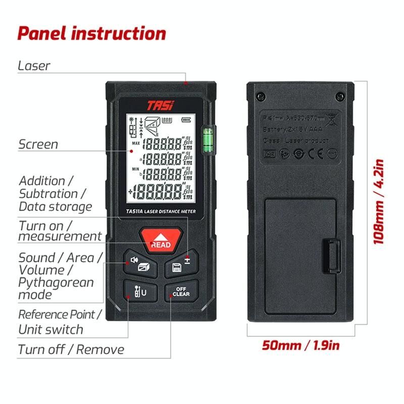 1. Distance measurement range: 0.05 - 50m for TA511A, 0.05 - 70m for TA511B, 0.05 - 100m for TA511C