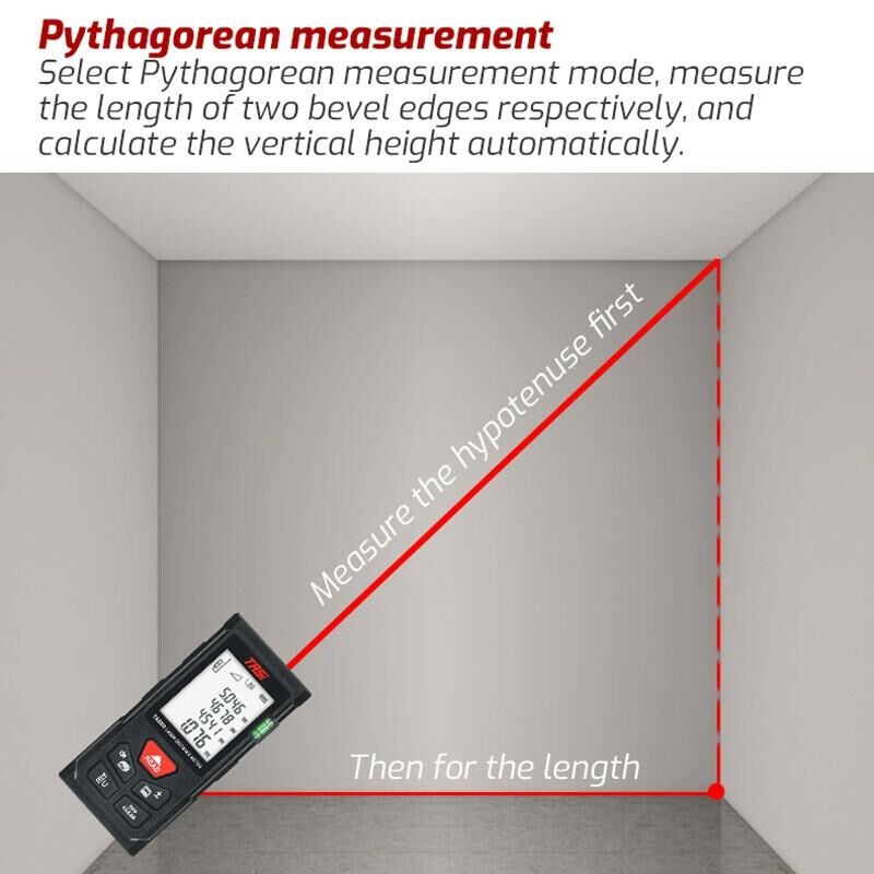 4. Select the Pythagorean measurement mode, measure the length of the two hypotenuses respectively, and automatically calculate the vertical height