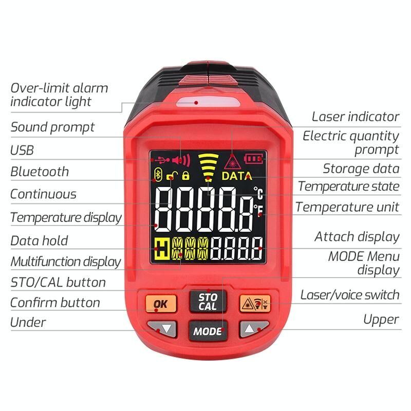 2. Temperature accuracy: -32 - 100 degrees C / 100 - 800 degrees C / 212 - 1472 degrees F: about 2%; above 800 degrees C / 1472 degrees F: about 3%; -26 - 1976 degrees F: about 4%