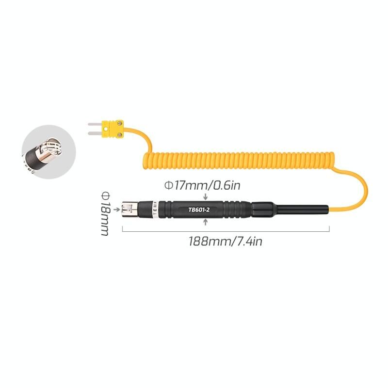 5. Probe size: TB601-1: 3x160mm; TB601-3: 16x90mm; TB601-4: 16x150mm; TB601-5: 3x190mm