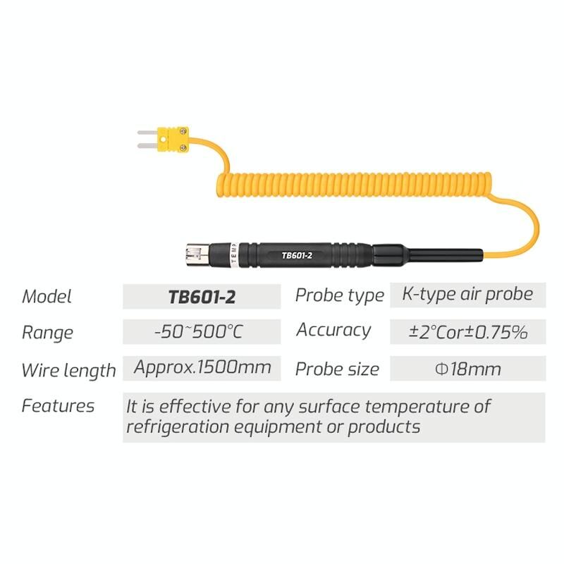- TB601-1/ TB601-5: for liquid and solidified colloid temperature measurement tip to the grip with metal coating protection