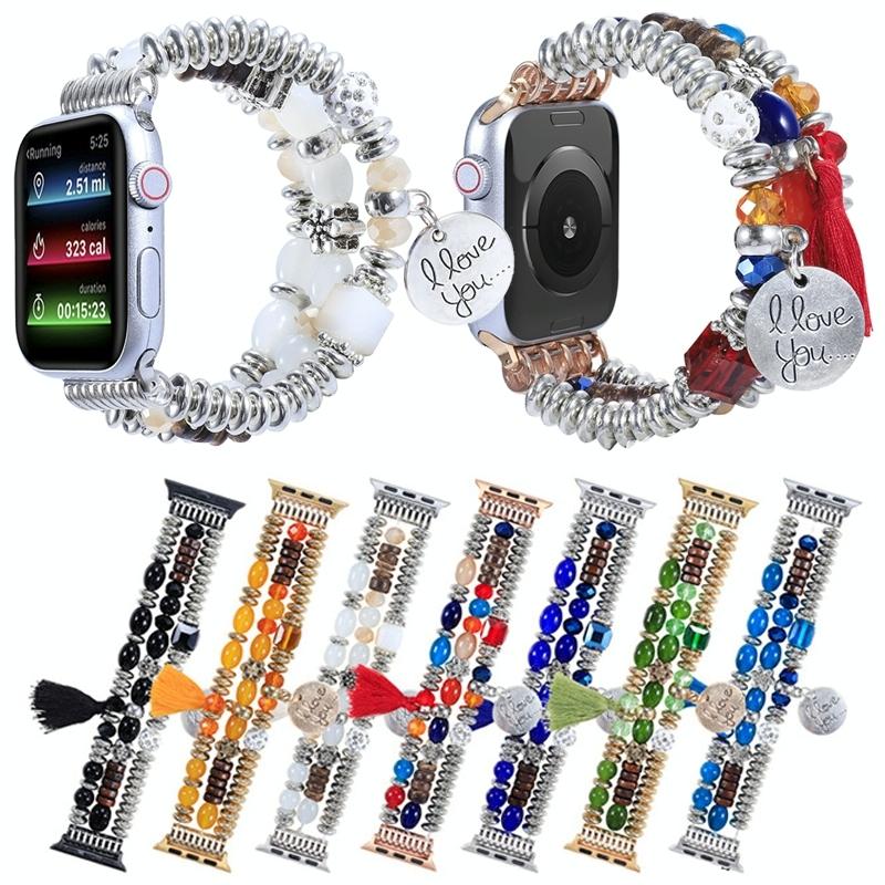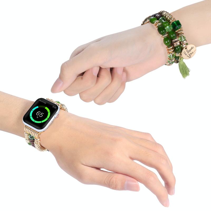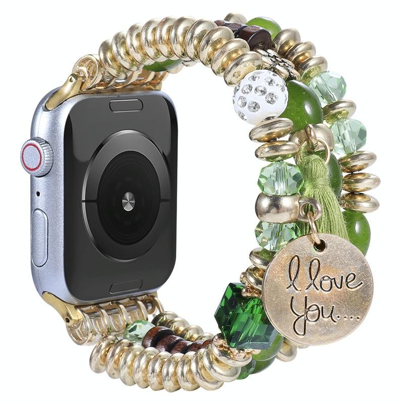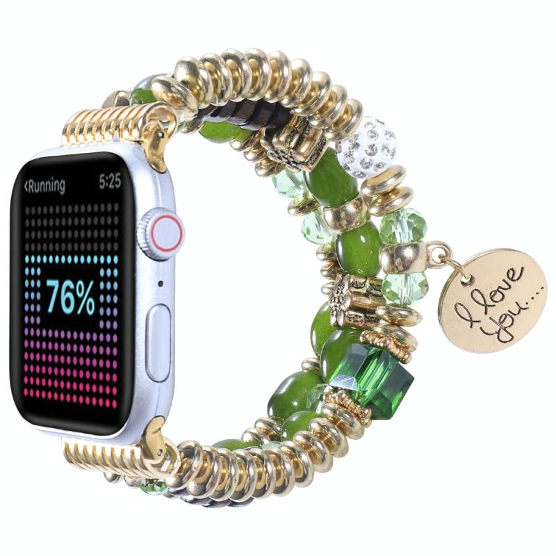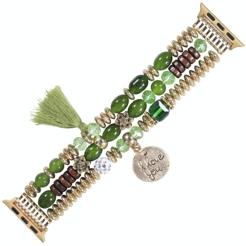 Λουρί ρολογιού με πούλιες και κρόσσια για Apple Watch Series 9&8&7 41mm / SE 3&SE 2&6&SE&5&4 40mm / 3&2&1 38mm (πράσινο)