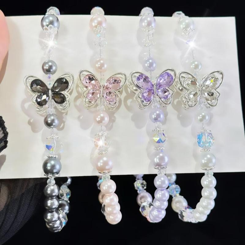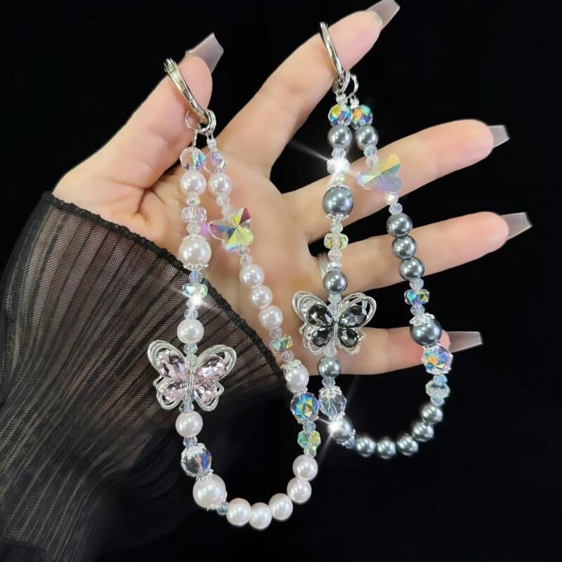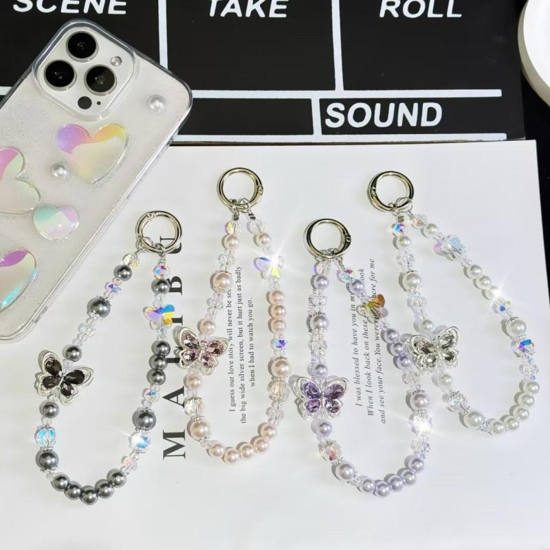 Tassel Pearl Double Butterfly Phone Chain(White)
