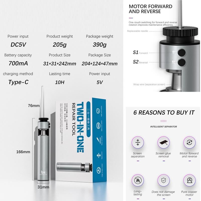 6. TBK-002 δύο σε ένα έξυπνο αφαιρετικό κόλλας, αφαιρεί γρήγορα την καμπύλη κόλλα/σκληρή κόλλα, την κόλλα OCA/αρχική κόλλα και μπορεί επίσης να χρησιμοποιηθεί ως αποσπώμενη οθόνη