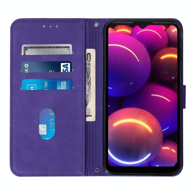 TCL 305i με δακτυλικό αποτύπωμα Crossbody 3D ανάγλυφο Flip υπόθεση τηλεφώνου δέρμα (Μωβ)