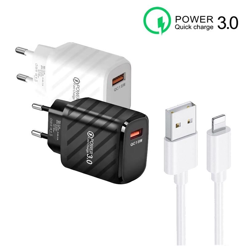 Φορτιστής USB Γρήγορης Φόρτισης TE-005 QC3.0 18W με Καλώδιο USB σε 8 Pin 1m 3A, Ευρωπαϊκό Βύσμα (Λευκό)