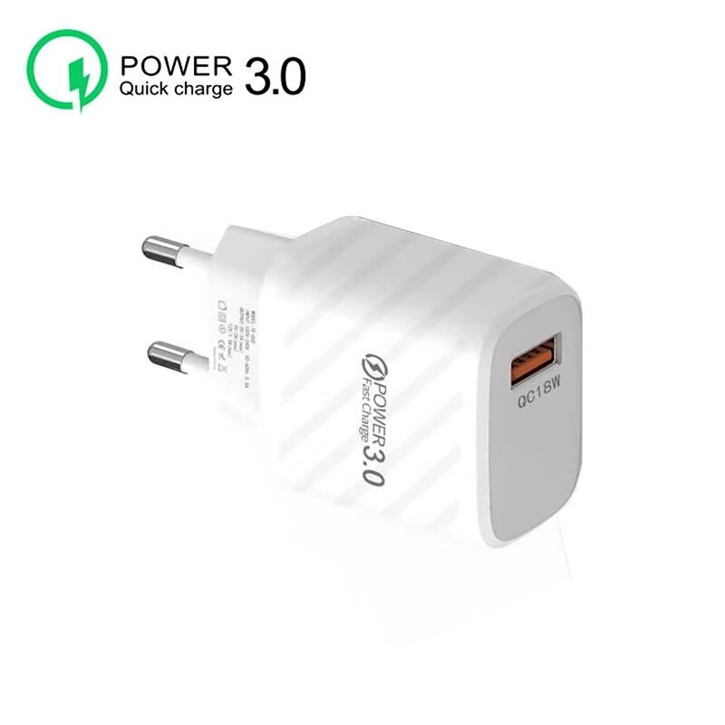 Φορτιστής USB Γρήγορης Φόρτισης TE-005 QC3.0 18W με Καλώδιο USB σε Micro USB 1m 3A, Ευρωπαϊκό Βύσμα (Λευκό)