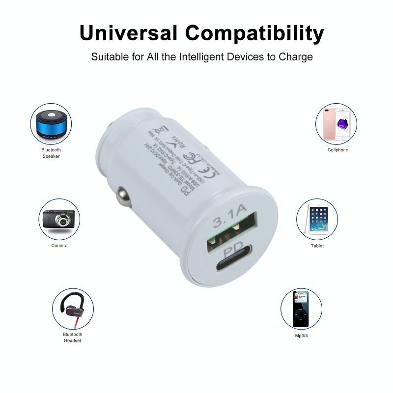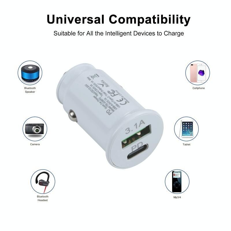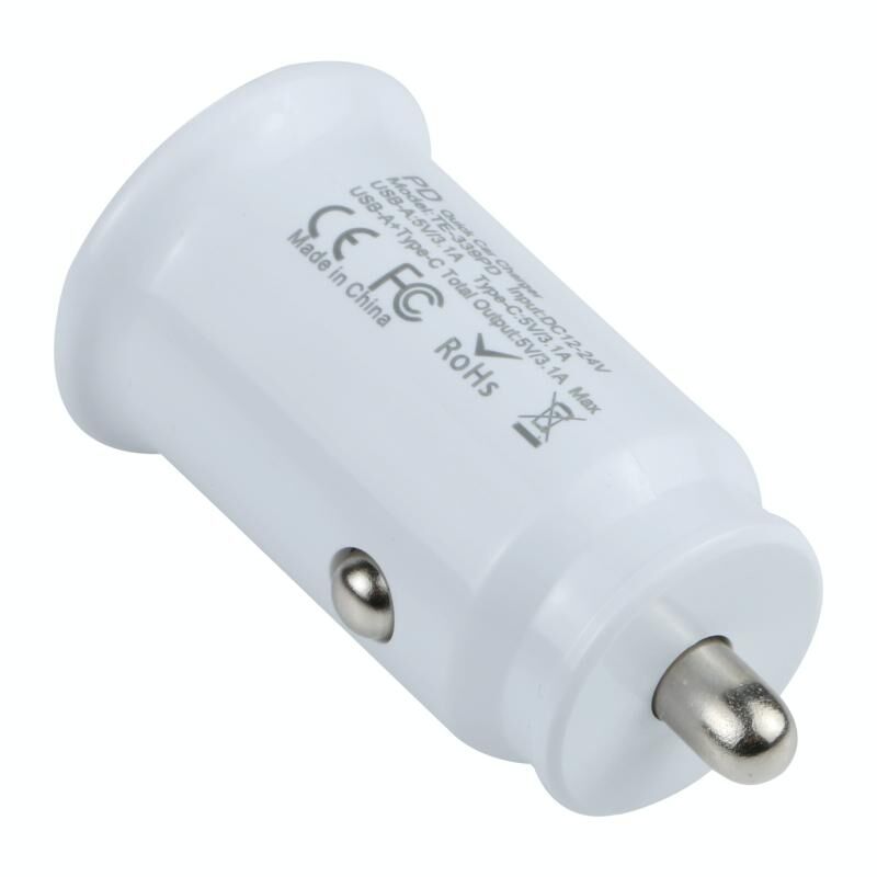TE-339PD 3.1A PD USB-C / Type-C + USB Interface Mini Fast Charging Car Charger(White)