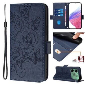 For Tecno Pova Neo 3 Embossed Rose RFID Anti-theft Leather Phone Case(Dark Blue)