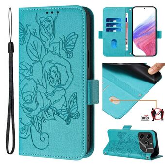 For Tecno Pova 6 Neo Embossed Rose RFID Anti-theft Leather Phone Case(Light Blue)