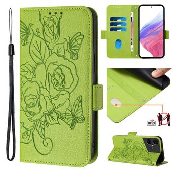 For Tecno Pova 6 Neo Embossed Rose RFID Anti-theft Leather Phone Case(Green)