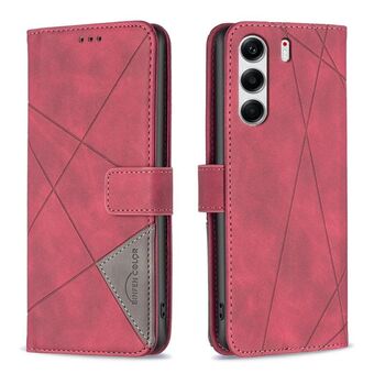 For Tecno Camon 40 Pro 4G Magnetic Buckle Rhombus Texture Leather Phone Case(Red)