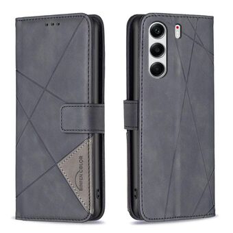 For Tecno Camon 40 Pro 4G Magnetic Buckle Rhombus Texture Leather Phone Case(Black)