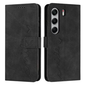 For Tecno Camon 40 Premier Skin Feel Heart Embossed Leather Phone Case with Long Lanyard(Black)