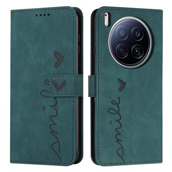For Tecno Camon 40 Premier Skin Feel Heart Embossed Leather Phone Case with Long Lanyard(Green)