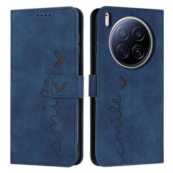 For Tecno Camon 40 Premier Skin Feel Heart Embossed Leather Phone Case with Long Lanyard(Blue)