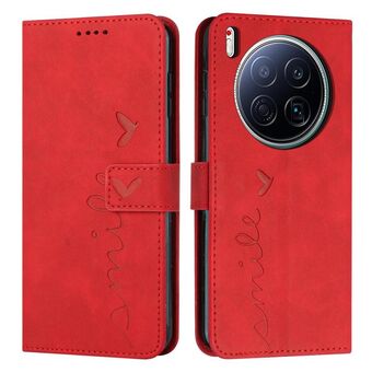 For Tecno Camon 40 Premier Skin Feel Heart Embossed Leather Phone Case with Long Lanyard(Red)
