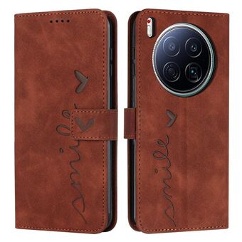 For Tecno Camon 40 Premier Skin Feel Heart Embossed Leather Phone Case with Long Lanyard(Brown)