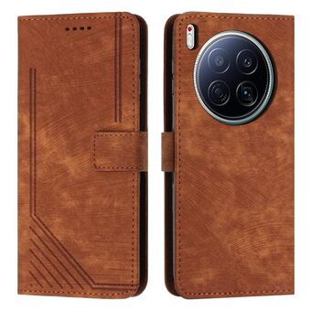 For Tecno Camon 40 4G Skin Feel Stripe Pattern Leather Phone Case with Long Lanyard(Brown)
