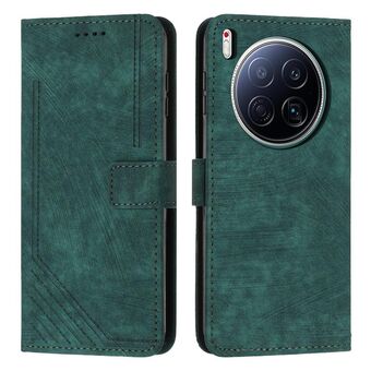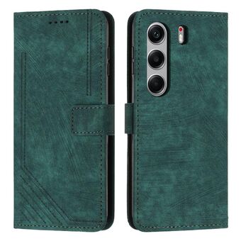 For Tecno Camon 40 4G Skin Feel Stripe Pattern Leather Phone Case with Long Lanyard(Green)