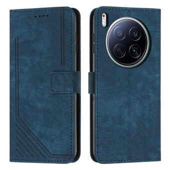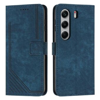 For Tecno Camon 40 4G Skin Feel Stripe Pattern Leather Phone Case with Long Lanyard(Blue)