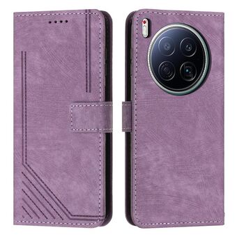 For Tecno Camon 40 Pro 5G Skin Feel Stripe Pattern Leather Phone Case with Long Lanyard(Purple)