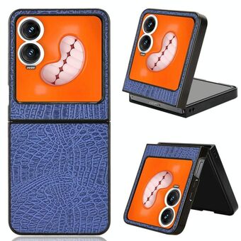 For Tecno Phantom V Flip2 Crocodile Texture Back Cover Phone Case(Blue)