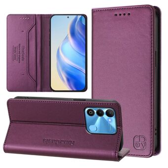For Tecno Spark 7 / 7T RC01 Dual-Folded Magnetic Suction RFID Leather Phone Case(Violet)