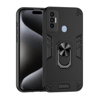 For Tecno Spark 7 Pro Shockproof Metal Ring Holder Phone Case(Black)