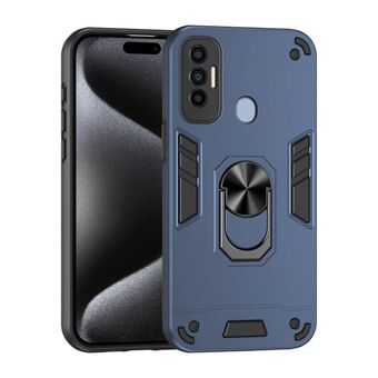 For Tecno Spark 7 Pro Shockproof Metal Ring Holder Phone Case(Blue)