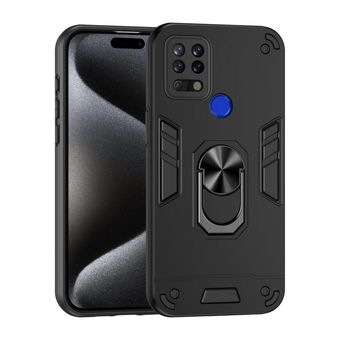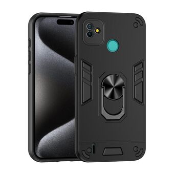 For Tecno Pop 6 Shockproof Metal Ring Holder Phone Case(Black)