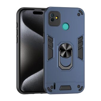 For Tecno Pop 6 Go Shockproof Metal Ring Holder Phone Case(Blue)