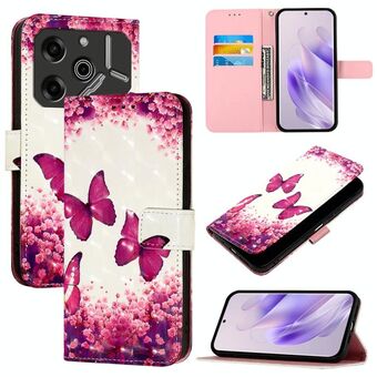 Θήκη τηλεφώνου από δέρμα με οριζόντιο άνοιγμα και τρισδιάστατη βαφή για Tecno Pova 6 4G (Ροζ Πεταλούδα)