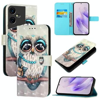 Θήκη τηλεφώνου από δέρμα με οριζόντιο άνοιγμα και τρισδιάστατη ζωγραφική για Tecno Camon 20 / 20 Pro 4G (Γκρι Κουκουβάγια)