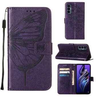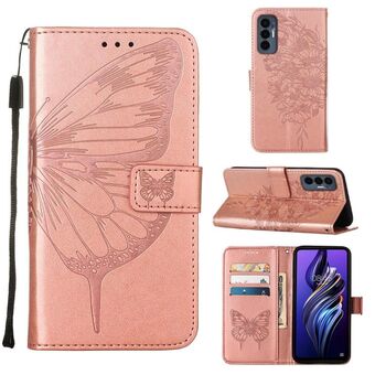 Θήκη τηλεφώνου Tecno Pova 3/LE7 από δέρμα με ανάγλυφο σχέδιο πεταλούδας (Μπλε)