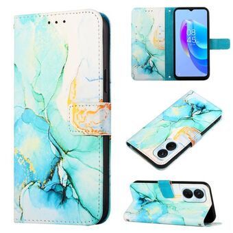 Θήκη τηλεφώνου Tecno Spark 9T από δέρμα με σχέδιο μαρμάρου (Μπλε Πράσινο)