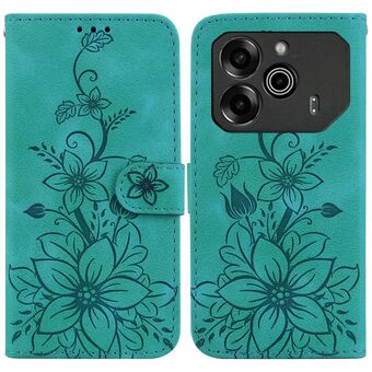 Θήκη τηλεφώνου από δέρμα με ανάγλυφο Lily για Tecno Camon 30 4G / 5G / CL6 / CL7 (Πράσινο)