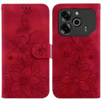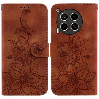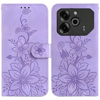 Θήκη τηλεφώνου Tecno Camon 30 Premier 5G από δέρμα με ανάγλυφο λουλουδιού Lily (Μωβ)