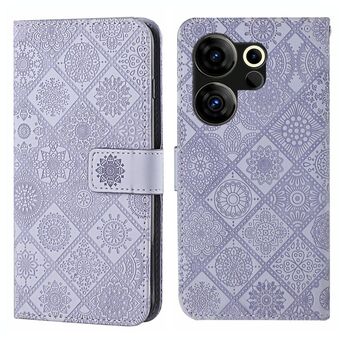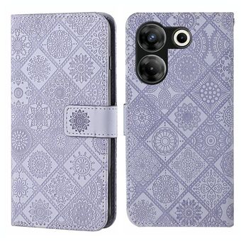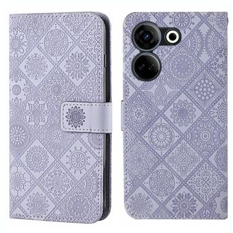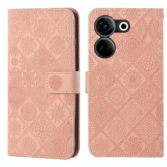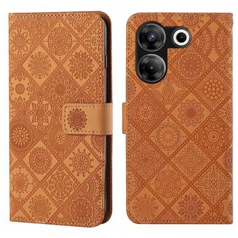 Θήκη τηλεφώνου από δέρμα με ανάγλυφο σχέδιο εθνοτικού στυλ για Tecno Camon 20 / 20 Pro (Καφέ)