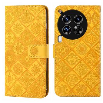 Θήκη τηλεφώνου από δέρμα με ανάγλυφο σχέδιο εθνοτικού στυλ για Tecno Camon 20 Premier (Καφέ)