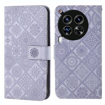 Θήκη τηλεφώνου από δέρμα με ανάγλυφο σχέδιο εθνοτικού στυλ για Tecno Camon 30 4G / 5G (Μαύρο)