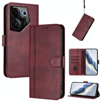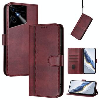 For Tecno Pova 5 Line Splicing Buckle Retro Leather Phone Case(Wine Red)