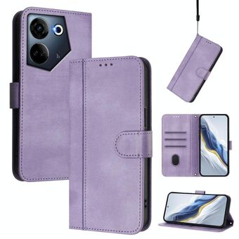 For Tecno Pova 5 Line Splicing Buckle Retro Leather Phone Case(Purple)
